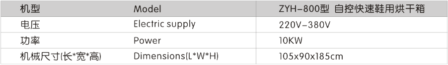 本机主要用于制鞋定型烘干作用,并采用热风内循环原理,升温快,可任意调节温度,从而达到快速烘干要求。